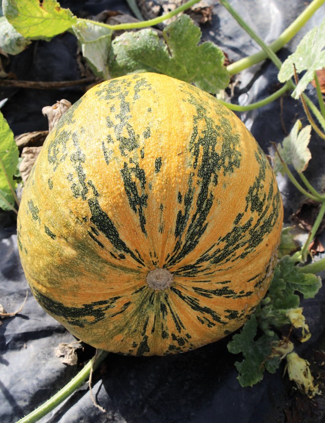 La variété F1 ‘Beppo’ que j’avais choisie pour sa forte production ne m’a pas déçue. Les gros et nombreux fruits pesaient jusqu’à six kilos et promettaient une importante récolte de graines.