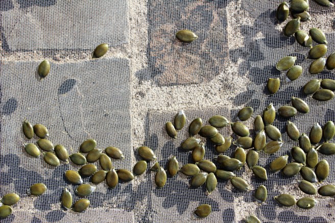 Il faut ensuite les débarrasser des filaments et les laver, puis les sécher pendant une ou deux semaines pour pouvoir les garder dans des bocaux. On peut accélérer ce processus en les mettant près d’une source de chaleur ou bien les utiliser fraîches dans les cracottes ci-dessous.