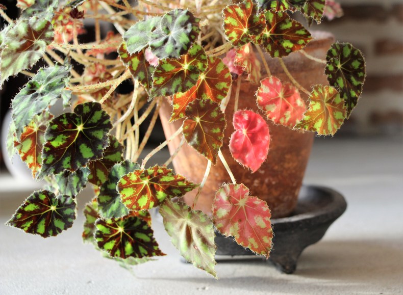 Le déménagement de bégonia bowerae ‘Tiger’ lui a également fait le plus grand bien. Un emplacement trop sombre l’avait poussé à allonger ces feuilles et c’est seulement sous une lumière vive mais sans soleil direct qu’il redevient plus touffu.