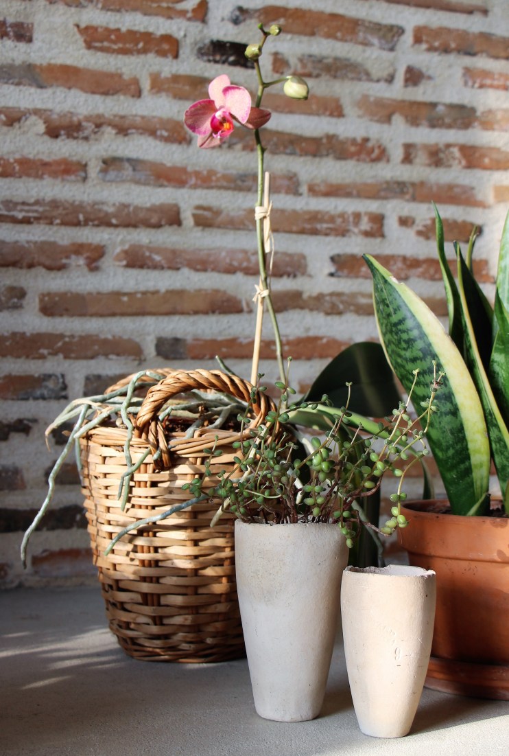 J’ai acheté mon orchidée Phalaenopsis il y a plus de dix ans et j’ai suivi le conseil d’une amie de le « négliger attentivement » si je voulais le voir refleurir. Je coupe la hampe florale dès qu’elle est défleurie et je l’arrose très peu. Je l’ai rempoté une fois, ce qui sera difficile à l’avenir car ses racines aériennes ont colonisé le panier cache-pot. Mais à chaque nouvelle floraison je ne peux quand même pas m’empêcher d’être émerveillée à la vue de cette beauté plus rare du tout !