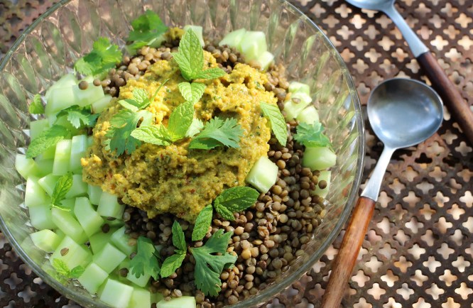 Salade de concombre et lentilles